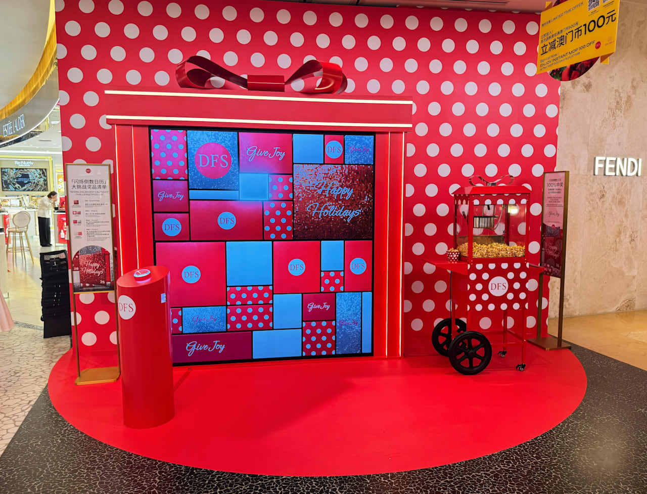 From December 19, 2025 to January 1, 2026, at DFS Hong Kong, Canton Road and DFS Macau, Shoppes at Four Seasons, City of Dreams, and Galaxy (Beauty), customers spending HKD/MOP 888 or above are invited to participate in an Advent Calendar interactive game! Test your reflexes to stop the fast flashing light on the calendar to win different prizes behind the dates! All participating customers have a 100% winning chance to experience the thrill of guaranteed gifts, from handbags, watches and jewelry to exclusive DFS shopping vouchers* curated to elevate your holiday celebrations.