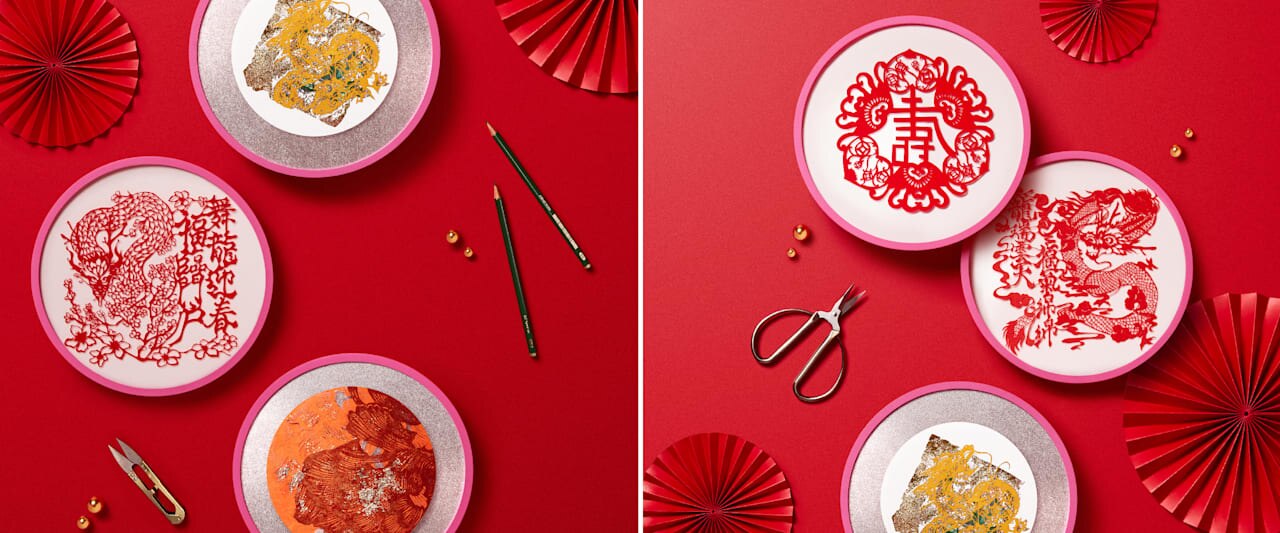 迪斐世携手香港艺术中心于全球其中13间店铺内展出独一无二的剪纸艺术。共10款剪纸是由3位香港艺术中心的艺术家以迪斐世新年活动主题“龙腾畅行悦新春”为设计灵感,亲手剪出来的。