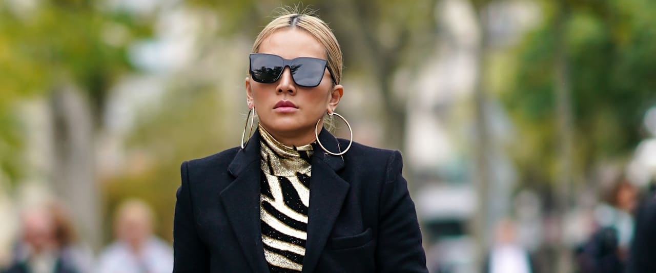 Be comfortable and look chic during casual, intimate settings by opting for layers of neutral monochrome tones in relaxed silhouettes. Of course, a little holiday cheer is non-negotiable — let yours shine through by way of pops of bright, festive green and accessories sprinkled with crystals. You can also forgo your “serious” sunglasses and opt for something with a playful touch — ‘tis the season, after all.