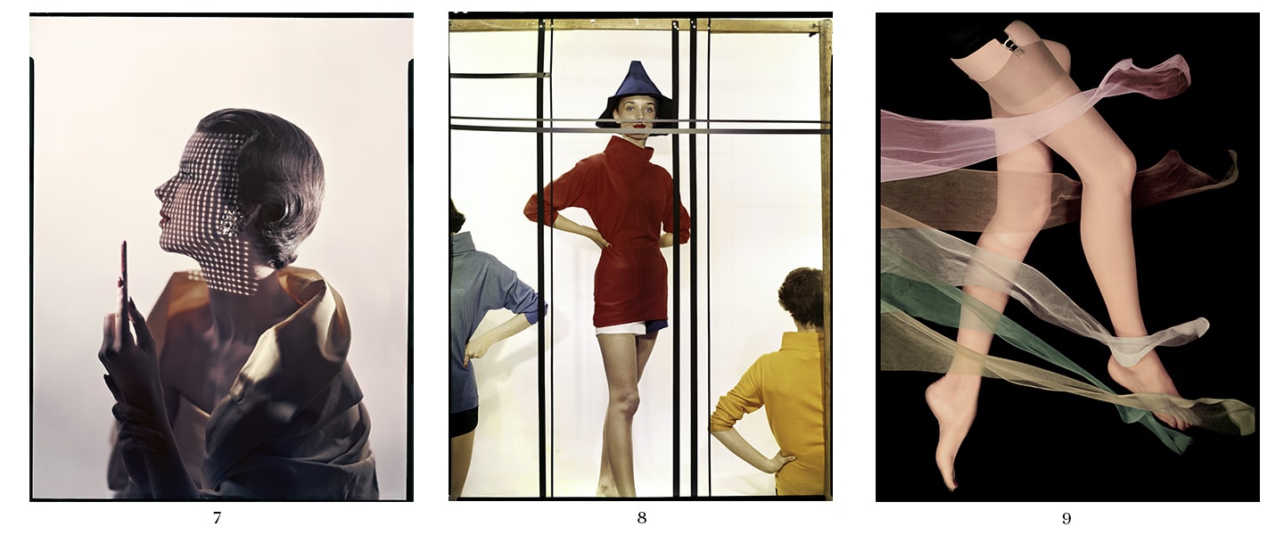 9. Variant of the photograph published in the article '6 versions of delicate stockings' in Vogue US, 1 February 1954
