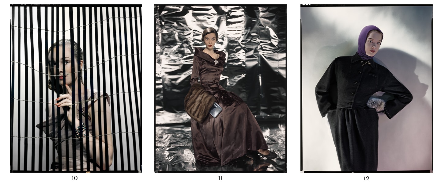 3. Variant of the photograph published in Vogue US, 1 November 1949, p101, Sargent dress by Christian Dior, model Evelyn Tripp