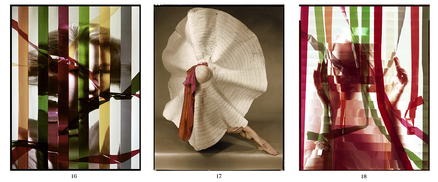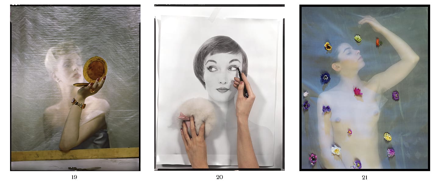 From left to right: Untitled, around 1948; Variant of Kaleidoscope cover photograph, November 1948. Model: Teddi Thurman; Kaleidoscope for an Advertisement of Charles of the Ritz, 1956 © The Estate of Erwin Blumenfeld