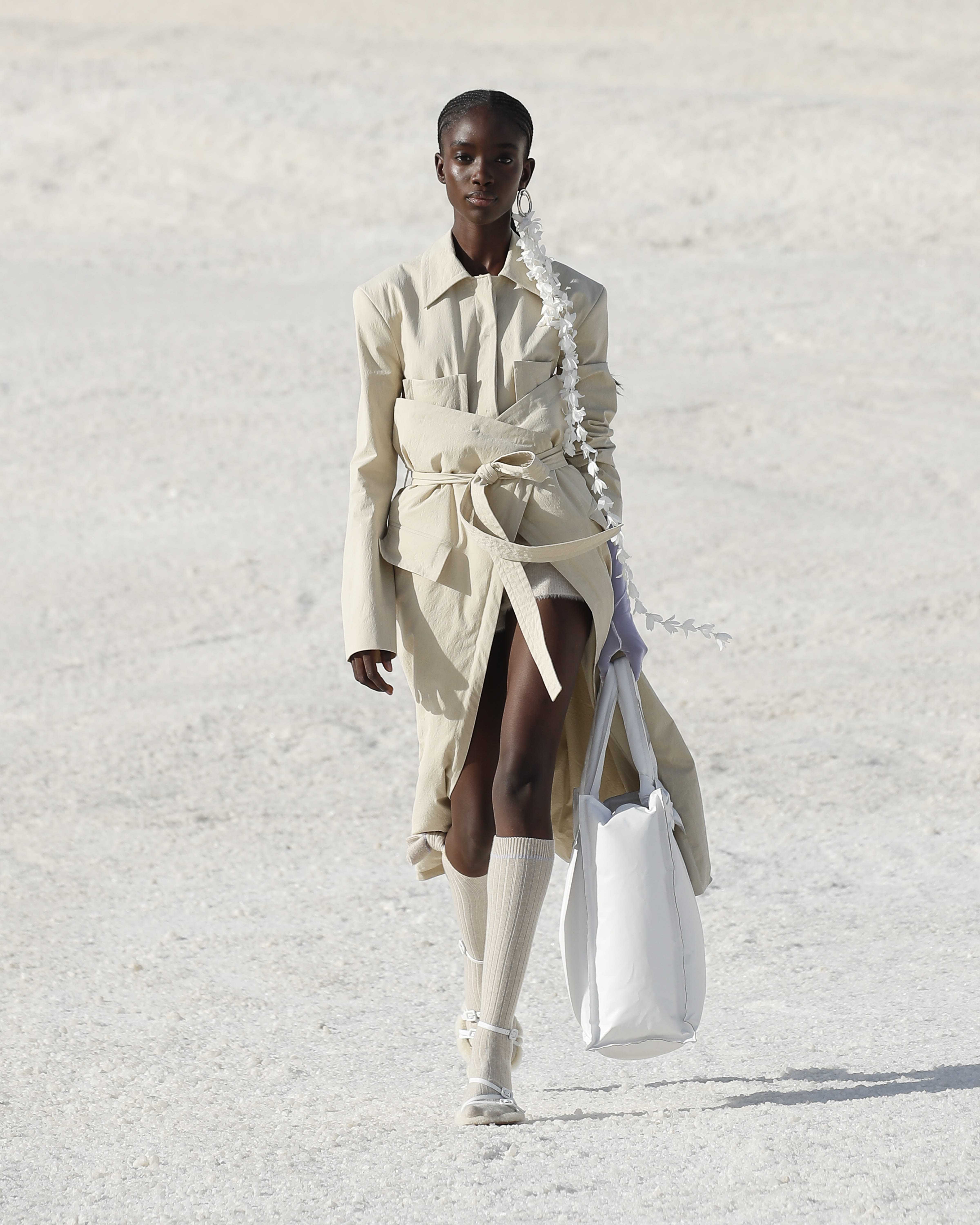 Simon Porte Jacquemus et JACQUEMUS sont indivisibles. Simon est né en 1990 à Salon-de-Provence, dans le sud de la France, et a grandi dans un village appelé Bramejean. Lorsqu'il lance sa marque en 2009, il l'appelle JACQUEMUS, le nom de jeune fille de sa mère. Simon s'inspire de sa Provence natale et de la région méditerranéenne. Il conçoit JACQUEMUS comme un hommage fluide et poétique à sa mère et aux femmes de sa vie. Chaque collection est une exploration sensible de son passé recontextualisé aujourd'hui. Ses défilés jouent sur une évasion artistique et un air de séduction enjoué. De la naïveté et du graphisme de ses premières collections à une représentation plus mature et naturaliste, la femme qu'il envisage a évolué vers une figure affirmée et résolument féminine. "Le souvenir de ma mère prend forme dans les vêtements mais vit dans leur attitude. J'imaginerai toujours la personnalité de la femme JACQUEMUS belle, libre et indéniablement méditerranéenne." — SIMON PORTE JACQUEMUS