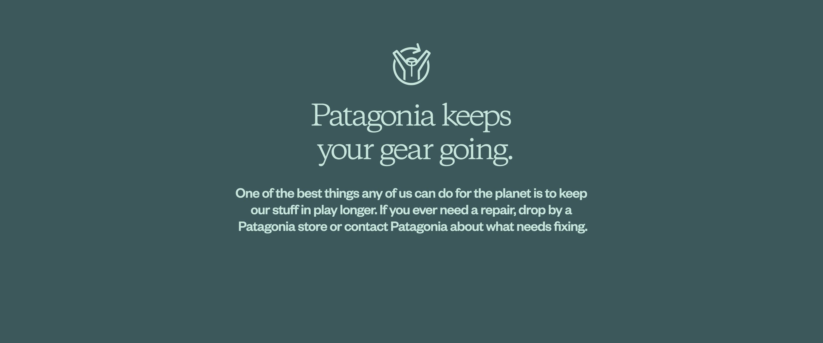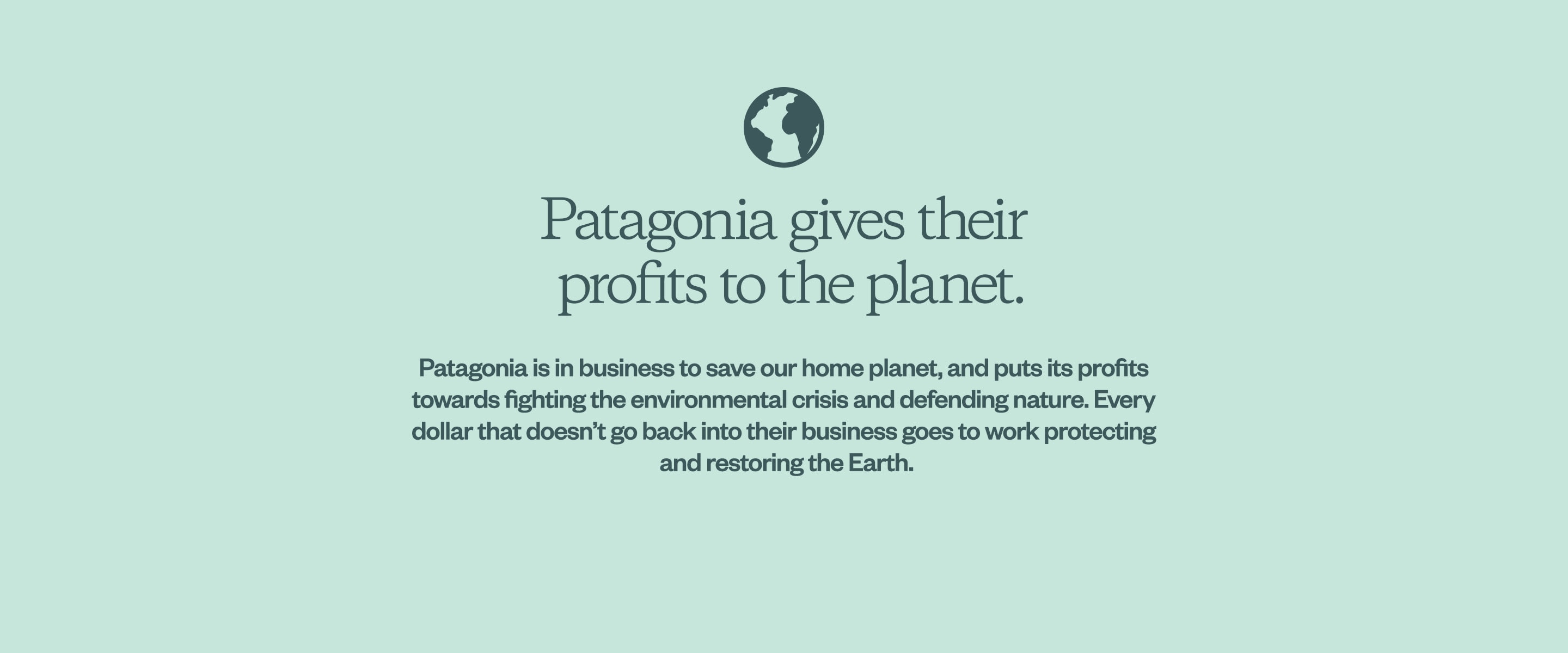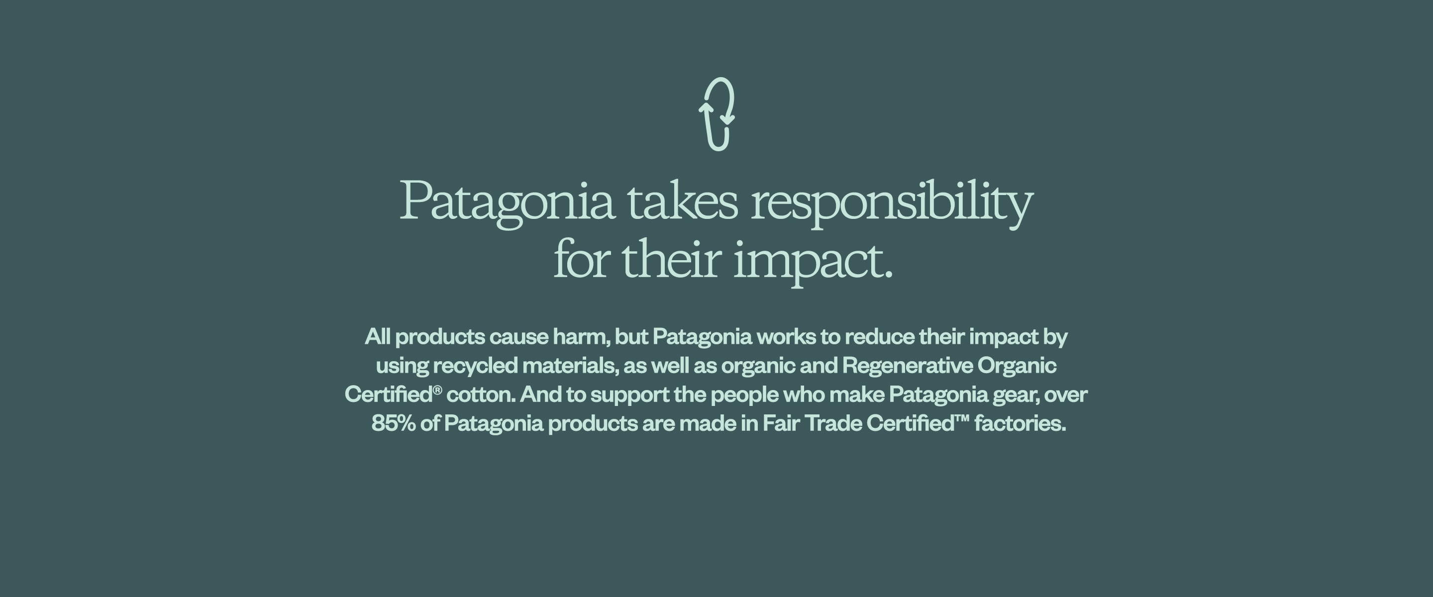 Patagonia makes quality gear for lifetimes of doing what you love. And for a future all of us can love, Patagonia’s profits go to restoring this wild and wonderful planet.